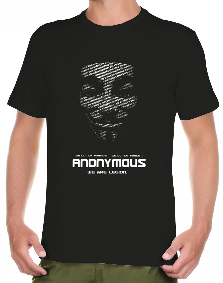 Camiseta Anonymous. Malha 100% Algodão. Cardado 30 fios. costura reforçada nos ombros.
